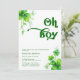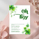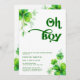 Celebre a chegada de um bebê com esta Rua charmosa. Apresentando o texto na moda "Oh BOY" em tons verdes elegantes, acentuados por delicados verdes e folhas de trevo irlandesas em dois cantos, esta design oferece uma maneira moderna e festiva de honrar a futura mãe. Perfeito para uma celebração de chá de fraldas alegre e memorável.