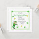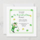 Uma Rua simples e festiva. convite de festas do Dia de Patrick com o meu design de um personagem de duende dançante, shamrocks e texto de amostra.