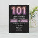 Números de néon cor-de-rosa brilhantes em um plano de fundo preto para uma festa de aniversário 101rua Todo o texto é editável. A cor preta do plano de fundo pode ser alterada.