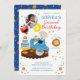 Convide todos os familiares e amigos para a celebração de aniversário do seu filho com esses convites de aniversário divertidos com o Monstro Come-Cookies assando um bolo de cookie com gotas de chocolate. Personalize adicionando todos os detalhes da festa e a foto do seu filho.