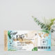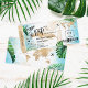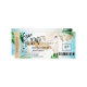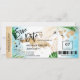 Ilhas Virgens dos EUA, Rua Thomas, Destino Praia Casamento Embaraçando Bilhete de Passagem Dourado Salve a data com coração e ícone de avião com folhas tropicais