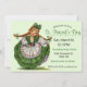 O convite apresenta uma Rua antiga. A ilustração do Dia de Patrick com uma garota dançando com tranças longas, vestido verde, avental branco e um xale de xadrez verde.