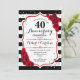 Convite de aniversário de casamento de 40 anos rubro vermelho. Convite elegante vermelho, preto e branco com brilho prateado falso. Apresenta listras pretas e brancas elegantes, fonte script e rosas vermelhas. Perfeito para uma celebração de 40º aniversário.