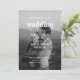Convite moderno para casamento, com um design simples e mínimo com tipografia ousada sobre sua foto favorita. A cor das fontes pode ser alterada para qualquer cor que você escolher na ferramenta de edição de design. O verso tem uma segunda fotografia. Este convite de casamento contemporâneo é excelente para um gótico ou casamento temático sanduíche.