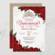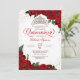 Convite de Quinceanera na rosa vermelha do telhado com sotaques de ouro e uma garota com glam tiara. Verifique o compro deste convite com meninas com diferentes cores de cabelo e tons de pele.