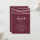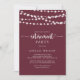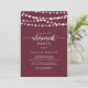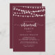 Esta corda rústica ilumina o convite de festas de aposentadoria burgundy é perfeito para um evento simples. A design apresenta belas luzes de cordas pintadas manualmente em um fundo burlão.