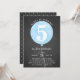 Convite de aniversário Rustic Black Chalkboard Blue Balloon Boy - ANO PERSONALIZADO