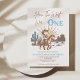Rustic Brown Blue How West was One primeiro aniversario Invitation Cute cowboy, western or rodeo temeu o primeiro convite de aniversário para o bebê garoto apresentando uma ilustração fofa de cowboy e cavalo, deserto ocidental com cactos e sol e um padrão de xadrez azul no verso. É assim que o oeste foi um primeiro convite de aniversário ideal para um primeiro aniversário do tema ocidental.