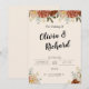Este belo convite de casamento apresenta elegantes bordas florais em tons de rosa e vermelho, acentuados com um verde sutil, estabelecendo um tom romântico e convidativo para nosso dia especial. Perfeito para convidados que procuram detalhes de eventos, direções e uma visão da estética do dia. Salve a data e comemore conosco!