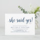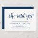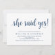 Belo design russo bonito e moderno, em Marinho azul, Festa de noivado de casamento (ela disse SIM). O cartão de convite perfeito, para a sua comemoração da festa de noivado. Adicione seus detalhes em fontes / letras correspondentes. #TeeshaDerrick