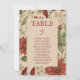 Organize sua recepção com estilo usando este assento rústico, com um design floral verde e vermelho farrado, perfeito para um casamento de outono.