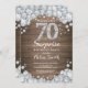 Convite de Aniversário do 70 de Surpresa Russo. Diamante de Rhinestone Rosa e Silver. Fundo Rustic Wood. Retro de Vintagem do País. Convidado Elegante Birthday Bash. Aniversário Adulto. Mulheres Aniversário. Homens Aniversário. Para mais personalização, clique no botão "Personalizar" e use nossa ferramenta de design para modificar este modelo.