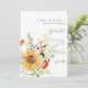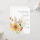 Este simples, mas elegante design de convite para o casamento apresenta um buquê rústico de cor d'água de vermelho, amarelo, castanho, creme, burgundy e flores silvestres de prados roxos com verde. É parte da suíte de casamentos Rustic Summer Wildflower & Sunflower criada pela Simply Farmhouse Press.