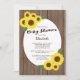 Modern Fall Sunflower Baby Shower Invtions apresentando lindos girassóis de outono em um fundo rústico de madeira marrom. Convite para chá de fraldas floral temporário para um chá de fraldas para raparigas, chá de fraldas para rapazes ou chá de fraldas neutro em termos de gênero.
