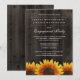 Rústicos Invitórios de Festa de noivado de girassol - apresenta um fundo de madeira de celeiro com girassóis rústicos no fundo.