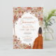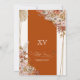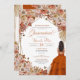 Convite de quinceanera com flores, rosas, erva-pampas e palmeiras secas e folhas de outono. Esta design apresenta uma menina de vestido marrom, cercada por lindas flores de outono e borboletas monarcas (que podem ser escondidas na ferramenta design se você não as quiser). Veja o compro para este design em variações múltiplas, incluindo tom de pele/cores de cabelo, e sem a menina também.