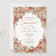 Convite de quinceanera com flores, rosas, erva-pampas e palmeiras secas e folhas de outono. Esta design apresenta uma menina de vestido marrom, cercada por lindas flores de outono e borboletas monarcas (que podem ser escondidas na ferramenta design se você não as quiser). Veja o compro para este design em variações múltiplas, incluindo tom de pele/cores de cabelo, e sem a menina também.