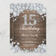 Convites Rustic 15 Birthday Silver Diamond