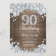 Convites Rustic 90 Birthday Silver Diamond