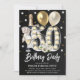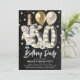 Celebre em estilo com este rústico convite de aniversário adulto 50º. Design apresenta um chalkboard blackground, lâmpada número 50, balões de ouro, champanhe, florais e confete. O modelo editável é fácil de personalizar usando o modelo fornecido.