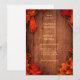 A warm and inviting design featuring a natural wooden background framed by vibrant autumn leaves and seasonal accents. The composition blends rustic textures with rich orange and red tones, creating a cozy and organic visual style. The natural elements and earthy palette evoke a timeless and charming atmosphere.