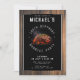 Rustic Barbecue 100º Convite de aniversário. Entre na perfeita mistura de encanto rústico e sofisticação moderna com o nosso design de convite de aniversário. Mergulhe no calor de um pano de fundo de madeira, acoplado a sotaques negros elegantes para um toque contemporâneo. O convite dá o tom a um churrasco inesquecível, onde a saudade nostálgica da estética rústica encontra a ousadia da design moderna. Junte-se a nós enquanto celebramos sob as estrelas, cercadas pelo conforto das texturas de madeira e pelas delícias de tamanho de um banquete de churrasco. Este convite promete não apenas um evento, mas uma experiência em que o encanto rústico do eterno e o talento moderno convergem para uma celebração verdadeiramente memorável.
