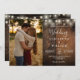 Este rustic barn wood string luzes convite de casamento podem ser personalizados com sua informação em tipografia moderna e uma foto especial. Projetado por Thisnotme©