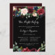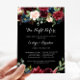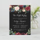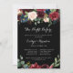 This rustic black night before rehearsal dinner invitation is perfect for a classic family and friends night before the wedding get together dinner. The design features burgundy, red, navy, blue and blush radiant and graceful hand-painted flowers in a black background, inspiring natural beauty.