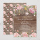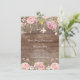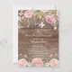 Linda madeira rústica floral cor-de-rosa com folhas de ouro primeiro convite da comunhão sagrada com um retorno floral coordenado para um toque especial extra.