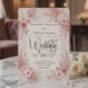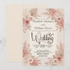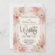 Romantic blush and dusty rose botanical design with soft neutral florals, ideal for rustic bohemian garden weddings and elegant spring or summer ceremonies.This design reflects classic wedding stationery structure with the couple’s names and the word “wedding” presented in an elegant flowing calligraphy script, while the ceremony details are arranged below using a traditional serif typeface for clarity and readability. The composition features balanced floral corner arrangements with dried palm leaves, soft roses, delicate foliage, and small berry sprigs surrounding the layout.The palette blends blush pink and dusty rose florals with warm beige, cream, and taupe neutrals to create a calm romantic atmosphere suited to bohemian garden weddings and rustic chic celebrations. The botanical artwork is illustrated in a soft watercolor style, giving the florals a hand-painted appearance with gentle color transitions and airy spacing.This is a flat printed image with a faux watercolor botanical effect, not actual raised material.