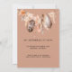 Um belo convite de chá de fraldas rústico com um berço de bambu estilo boho em fundo de madeira. Matizes terríveis de siena e bisque.