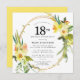 Um belo arranjo de primavera floral apresenta daffodils amarelos e brancos decorando uma estrutura rústica. O grande verde e os caaffodil dão-lhe uma vibração moderna do Boho. O convite do janto de aniversário de 18 anos é amarelo ensolarado brilhante. Escolha perfeita para uma festa de aniversário primavera.
