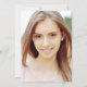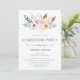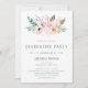 Este convite de festas rústico e de moda apresenta um buquê cheio de flores e penas de aquarela. A foto pessoal do formando vai atrás.