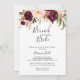 Este brunch floral rustic boho com o convite ao chá da noiva é perfeito para um chá de casamento moderno. A design apresenta coloração d'água rosa, roxa, vermelha e burgundy, agrupadas em buquês elegantes com folhagem verde, inspirando beleza natural.