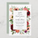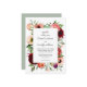 Este encantador convite de casamento estilo boho enquadra seu texto com peônias de aquarela, rosas, anêmonas, flores silvestres e verde misto. A paleta colorida lúcida inclui tons ricos de rosa, vermelho borrado, pêssego, esbranquiçado, verde e verde. Os emparelhamentos do tipo face usados na modelo de texto transmitem seus detalhes de casamento em um estilo único com os nomes da noiva e do noivo em letra minúscula. A parte de trás do convite é uma sombra coordenadora de verde-sábio. Você pode personalizar a cor traseira para a cor de sua escolha selecionando "clicar para personalizar ainda mais" na parte inferior do modelo de texto e selecionando uma cor de fundo diferente. Este esquema de cores é uma escolha adequada para casamentos em qualquer estação do ano.
