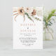 Cumprimente o seu evento especial de casamento com este rude boho simples de trás e o convite formal para o casamento. O design apresenta creme de aquarela, flores brancas, castanhas e grama-pampas verde em buquês elegantes. Salve o papel, incluindo mais detalhes na parte traseira do convite em vez de em uma placa de gabinete separada.