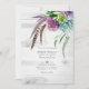 Trendy suculent fitocasamento com penas boêmicas e caligrafia elegante personalizável para seu evento específico. Ideal para qualquer tema ou casamento de jardim. O código QR no verso direciona para o seu local de casamento onde o pessoas pode aprender mais e rsvp.