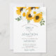 Um buquê de verão de girassóis e flores silvestres decora o topo com elegante e simples tipografia abaixo. Personalize facilmente o texto e você também pode alterar estilos e cores de fontes, bem como a cor de fundo na frente e verde de sábio no verso, se desejar, através da opção personalizar mais. Você também pode estar interessado nas nossas folhas de nome de convidado individual e etiquetas de endereço para ajudar nas suas malas de núpcias.