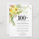 Um belo arranjo de primavera floral apresenta daffodils amarelos e brancos decorando uma estrutura rústica. O grande verde e os caaffodil dão-lhe uma vibração moderna do Boho. O final do 100º convite de aniversário é amarelo ensolarado brilhante. Escolha perfeita para uma festa de aniversário de primavera.