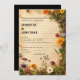 This elegant wedding invitation features a charming blend of rustic charm, floral artistry, and a love for literature. The design captures the essence of a timeless and romantic celebration, perfect for book-loving couples. The soft, natural color palette and delicate floral prints create a warm and inviting atmosphere, while the vintage-inspired typography adds a touch of sophistication. Ideal for couples who want to express their unique style and passion for both nature and the written word on their special day.