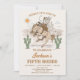 Any age rodeo, western, cowboy or wild west themed boys birthday invitation featuring a cowboy and horse, cactus, western desert landscape and sun. This rodeo birthday invitation is ideal for a boys western themed birthday party.