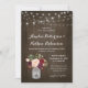 Design apresenta um fundo de grãos de madeira de cor d'água rústica com as luzes de cordas brilhantes no topo. Design também apresenta um belo pote de mason repleto de burgundy, vermelha, ameixa e rosas de pincel com verde botânico eucalipto. Mude as iniciais da demonstração para as suas.