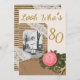 Convites Rustic Burlap e Lace Rosa 80 de Aniversário