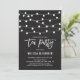 Convide familiares e amigos com este convite de festas de chá rústico e caprichoso. Apresenta luzes de fadas brancas suspensas sobre um fundo de quadro negro. Este convite à luz é perfeito para festas de chá ao ar livre.