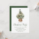 Invite friends and family to celebrate the season with this elegant Christmas party invitation featuring a hand-painted evergreen tree adorned with blush, champagne, green, and golden caramel-toned ornaments accented by soft white lights. The tree rests in a woven wicker basket at the top of the design, while “Christmas Party” appears below in graceful green handwritten script. Personalize the lower portion with your event details, date, time, and RSVP information. Set against a white background, this timeless design blends rustic farmhouse charm with classic holiday elegance — perfect for festive dinners, seasonal gatherings, and cozy Christmas celebrations.