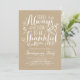 Há sempre algo para agradecer. Convide convidados para o seu evento com este convite de Ação de Graças personalizável. Ele apresenta uma citação de Ação de Graças na caligrafia rustica em um fundo de papel kraft falso. Personalize adicionando seus detalhes. Itens correspondentes estão disponíveis.
