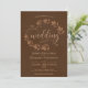 Este belo convite para o casamento apresenta um design rústico com ranhuras de folhas de aquarela e inscrições modernas num fundo castanho marmoreado. Sofisticados, clássicos e quicos, estes convites adicionarão estilo e graça à sua celebração de casamento.