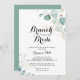 Este brunch floral de ouro rústico com o convite para o chá da noiva é perfeito para um simples chá de casamento. Este design artístico apresenta folhagem verde de ouro desenhado à mão e cor d'água eucalipto, inspiradora beleza natural.