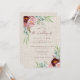 Um elegante design de aquarela com grande peônia e rosas em tons de rosa empoeirado com belo verde de eucalipto em um fundo de burlap claro. A parte traseira do cartão tem o mesmo plano de fundo de burvolta com um pequeno arranjo floral no centro. Este belo convite faz parte de uma suíte de casamento correspondente que pode ser totalmente personalizada.