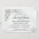 Este belo convite de janto de ensaio é rústico e elegante. Apresenta uma design de aquarela pintada manualmente com folhas de eucalipto e ranhuras de flores lavandas em tons de verde-sábio e roxo claro. Ele tem informações sobre o ensaio de casamento, assim como sobre o janto comemorativo que se segue. Perfeito por manter a noiva informada sobre todas as festividades pré-casamento.